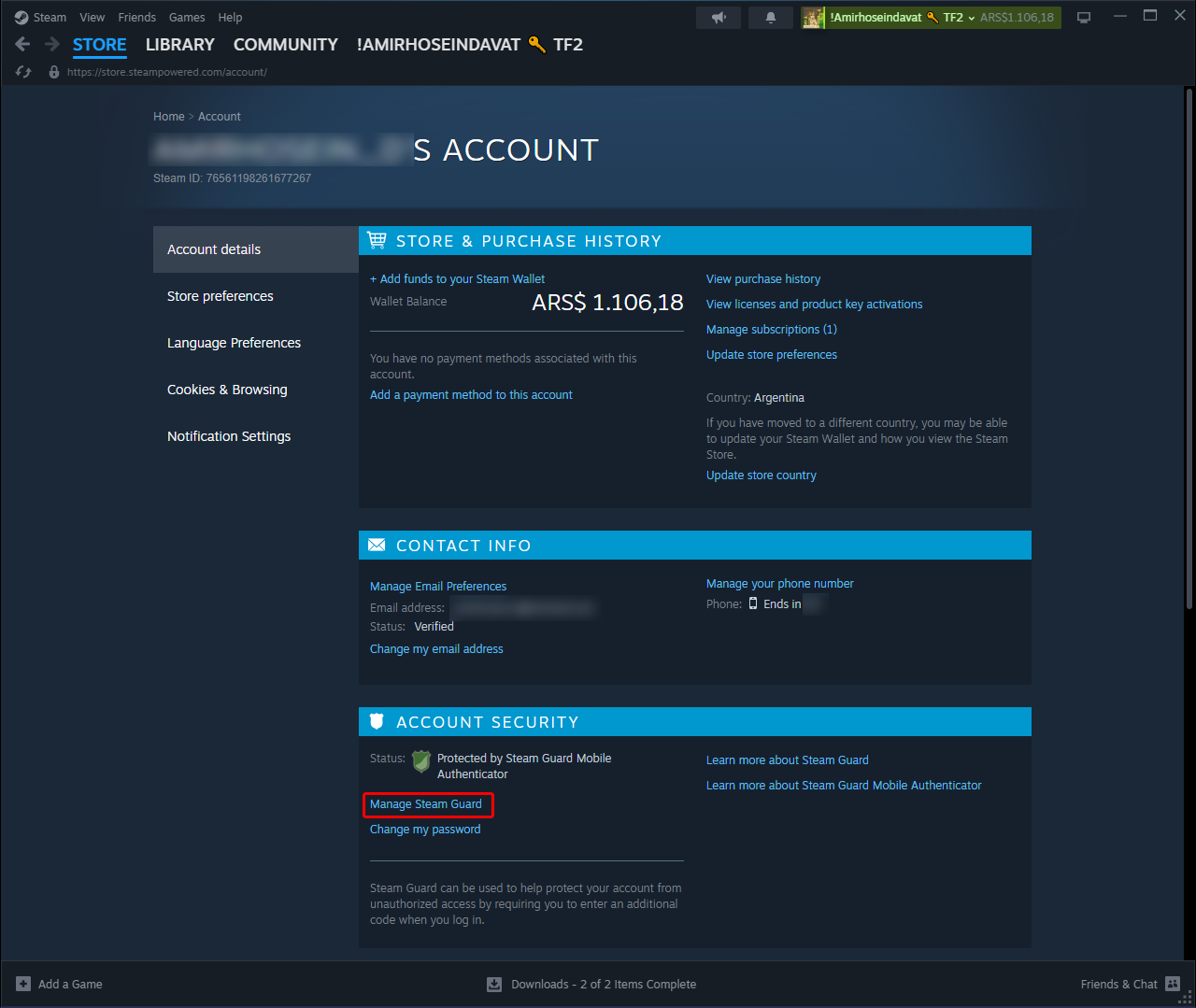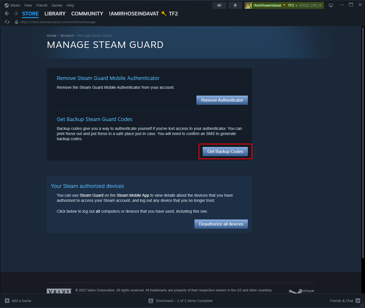 برای ایجاد بکاپ کد باید به Account Detail مراجعه کنید، در بخش Account Security روی گزینه Manage Steam Guard کلیک کنید، در صفحه جدید روی دکمه Get Backup Codes کلیک کنید.